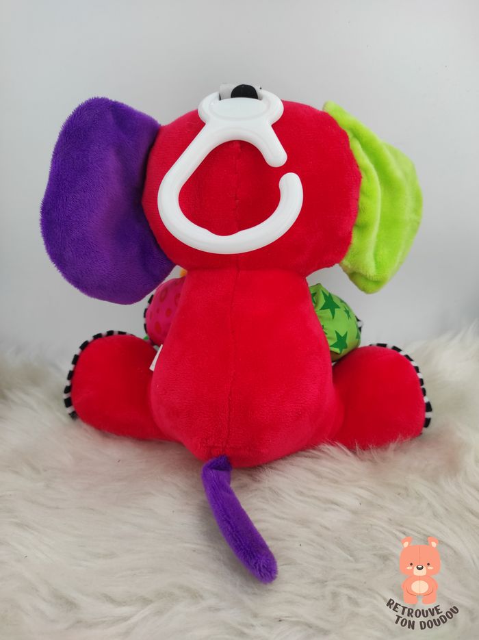 🐘 Doudou Peluche d'activités et musical éléphant rouge et multicolore avec accroche pour le suspendre. Anneaux, anneaux de dentition, papier froissé, textures. Marque Baby Funs 📏 Dimension : 20 cm environ ✨ Occasion, très bon état, proche du comme neuf, musique fonctionnelle. 🧼 Passage vapeur 👀 Vous achetez le doudou que vous voyez sur les photos.