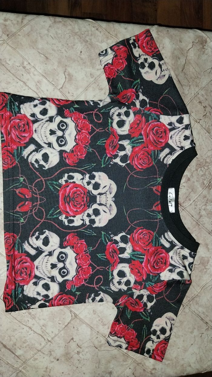 So rock so original Crop top / t-shirt cropped By Gr.LoLï État neuf, porté 1 fois Taille S Noir Imprimé têtes de morts/ 💀crânes/ skulls Musthave pour un look rock ou pour une occasion avec dress code #croptop #tshirtcropped #croptopmanchescourtes #manchescourtes #tailleS #taille36 #etatneuf #noir #Grloli #Imprimétetesdemort #cranes #os #skulls #skull #rouge #vert #rock #Colrond #dresscode #soireesatheme #sojufemme #sojufemmes #sojufemme36 #sojufemmetop #sojufemmetops #sojufemmetop36 Envoi rapide suivi et soigné assuré Fdp au minimum via Mondial Relay