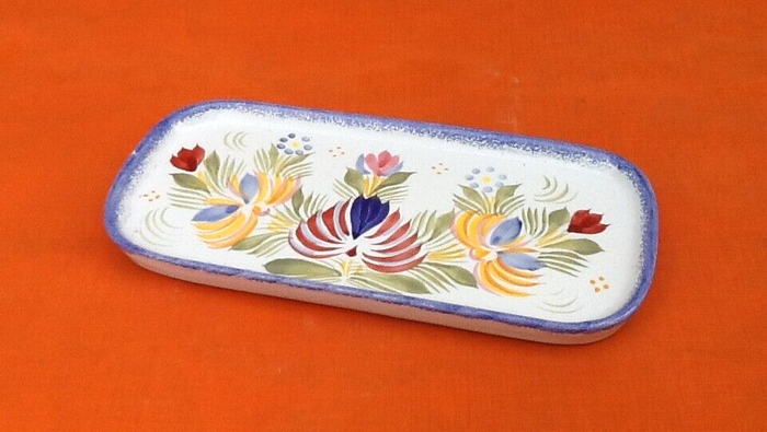 Plateau à beurre Faïence HB Henriot Quimper France Décor floral Longueur : 215mm Largeur : 100mm Hauteur : 18mm Poids : 270grs