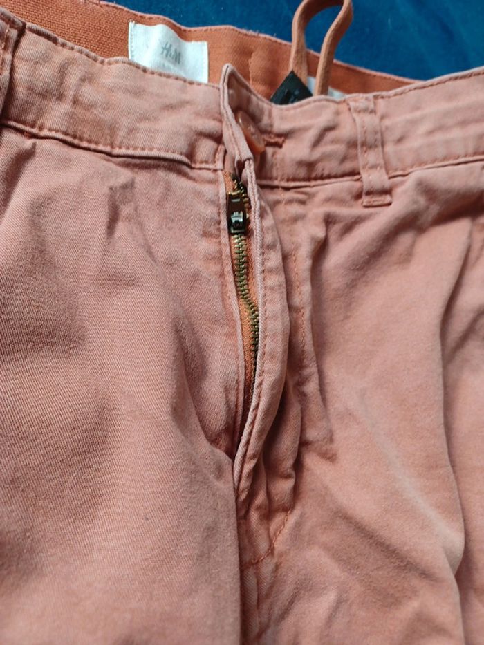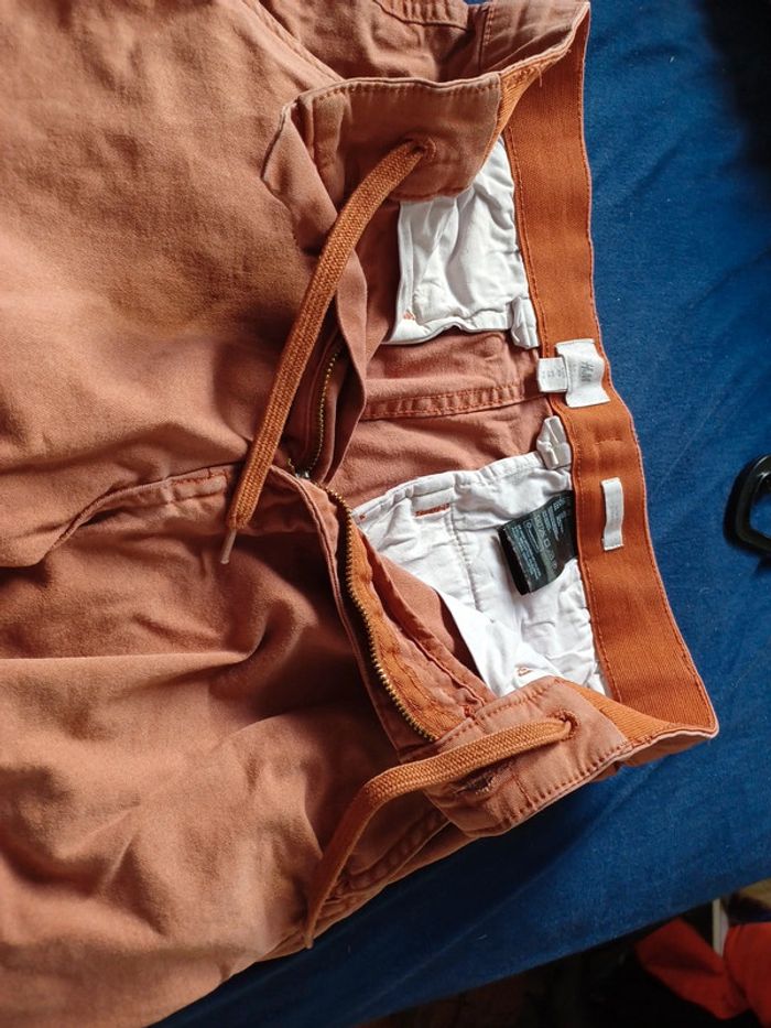 Joli bermuda de couleur brique (pas orange comme sur les 2 premières photos) Fermeture par bouton+ zip et lacet à l'intérieur 1 poche de chaque côté et 2 à l'arrière #lae73tailleXS