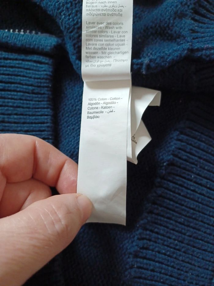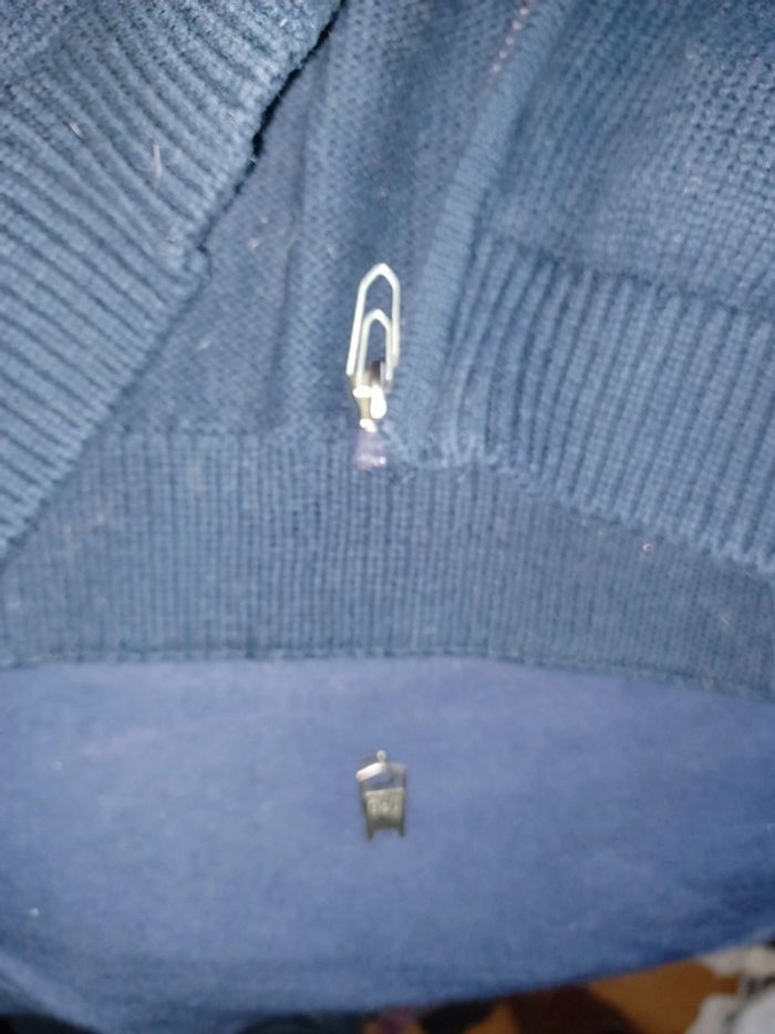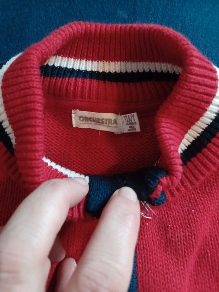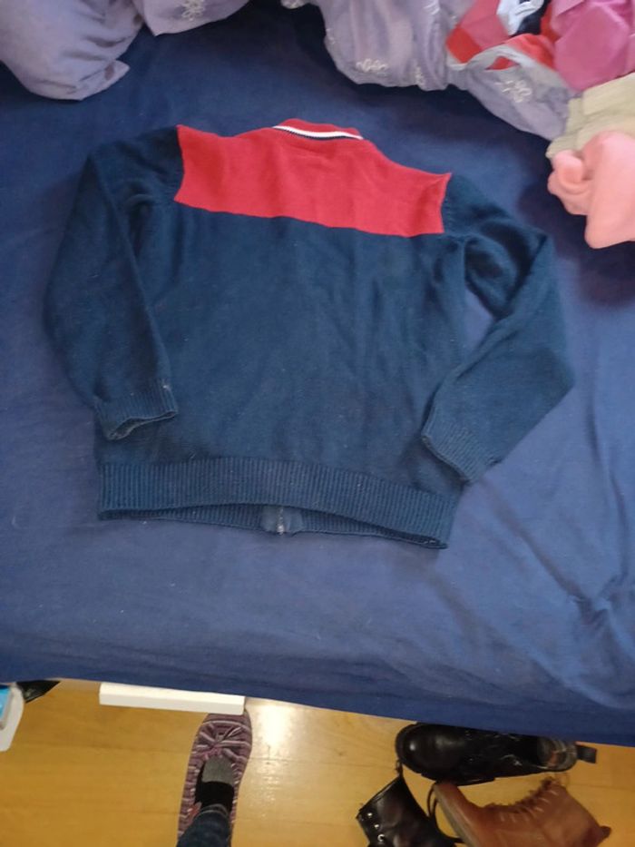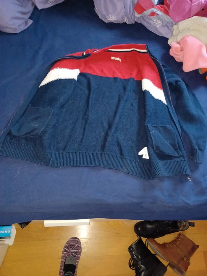 Beau gilet 100%coton de chez orchestra taille 12 ans J ai cassé le fermoir de la fermeture éclair en prenant des photos je l'ai remplacé par un trombone d où le prix bas Couleur bleu marine rouge et blanc 1 poche de chaque côté #lae73garcon12ans