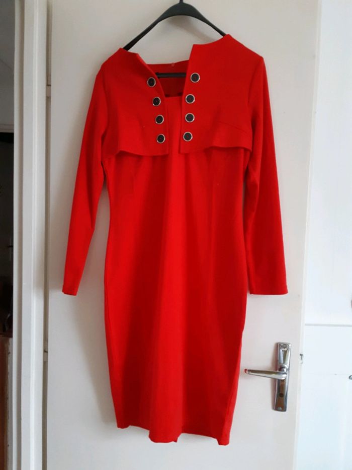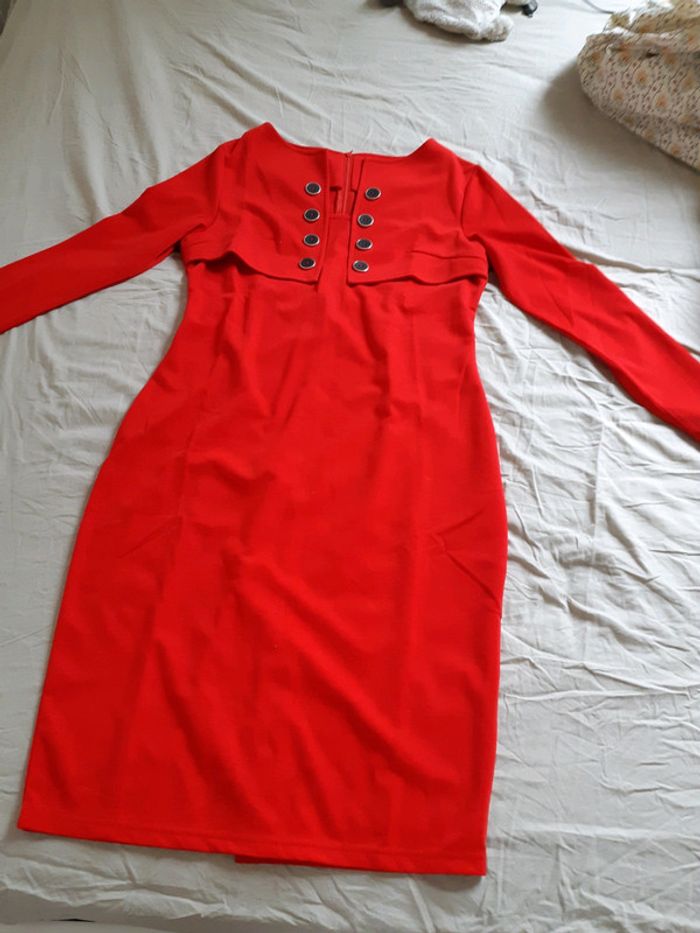 Robe rouge (plus foncée que les photos ne laissent supposer) avec effet de superposition Neuve jamais portée voir mes autres articles en cliquant sur #lae73femmeTU