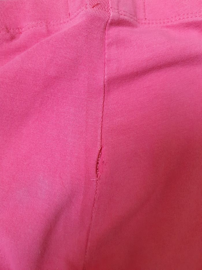 Lot de 2 leggings court, le rose à une tâche au genou et voir la couture au niveau des fesses, voir photos.