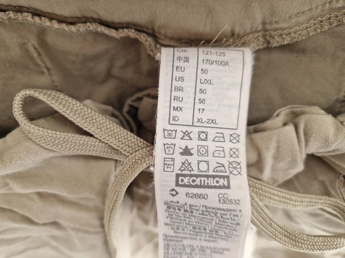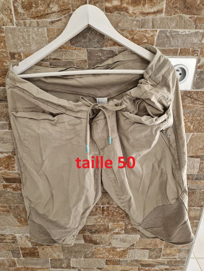 1 pantacourt short long taille 50 beige marron clair marque quechua manque un crochet pr fermer le haut du pantalon mais il y a 1 bouton et un lien pour fermer #laetie69_femmesTAILLE50