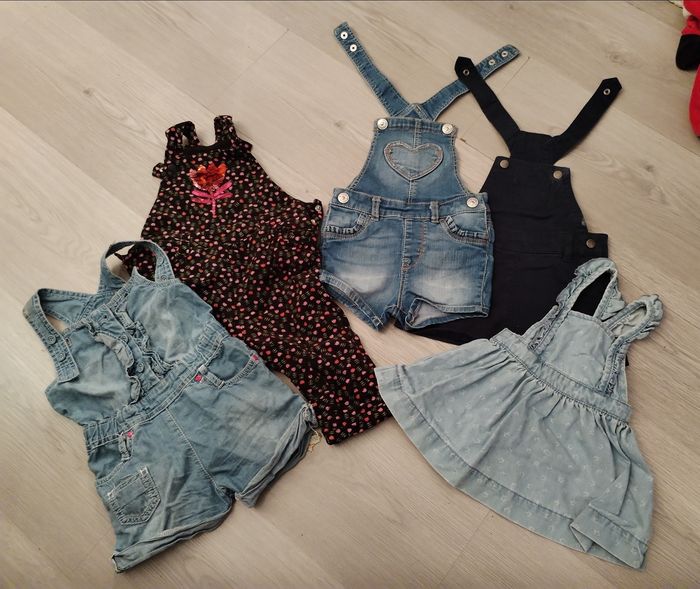 Lot salopettes et robes en Jean fille été