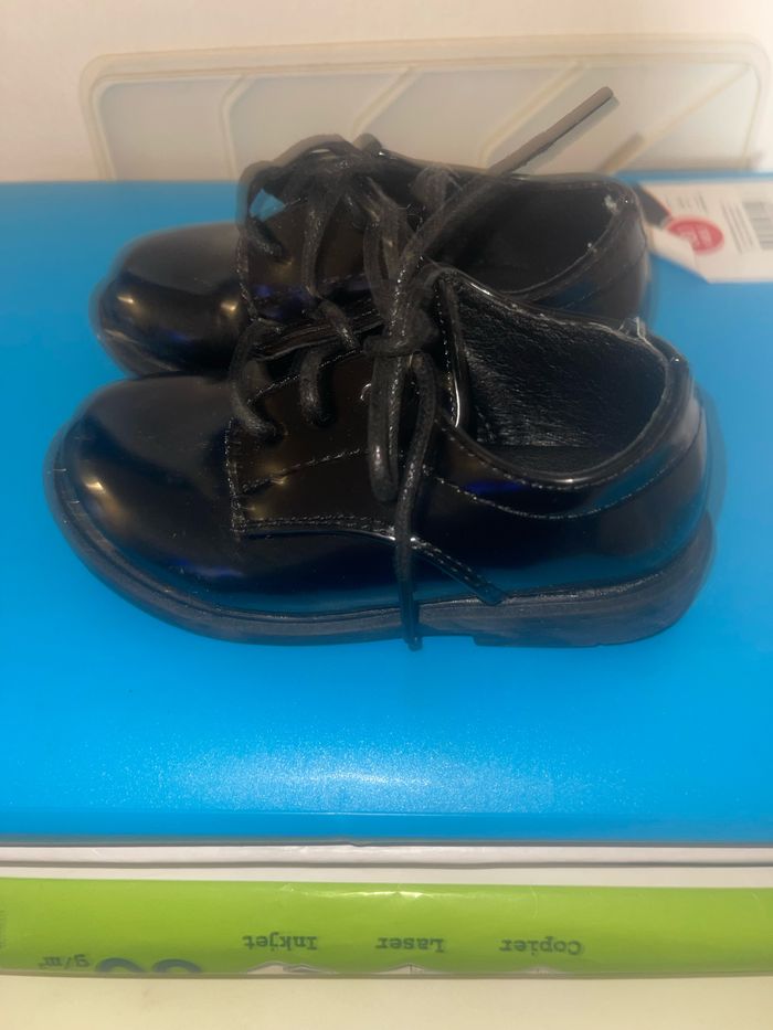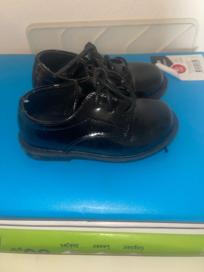 Bonjour je vend la paire de chaussures de ville de mon fils taille 21 porté 1 fois 1heure pour un mariage état comme neuf vendu 20€ la paire acheté 40€