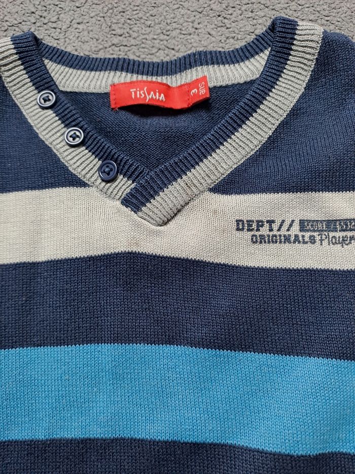 Pull fin garçon 3 ans. Quelques tâches au cou. Très bon état.