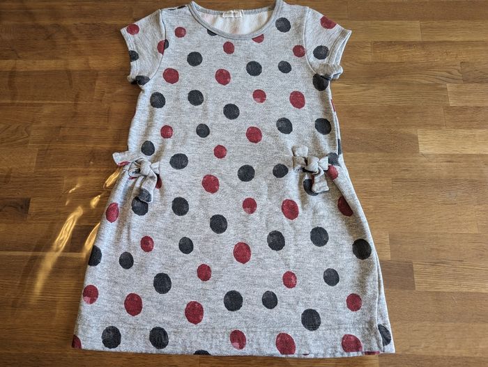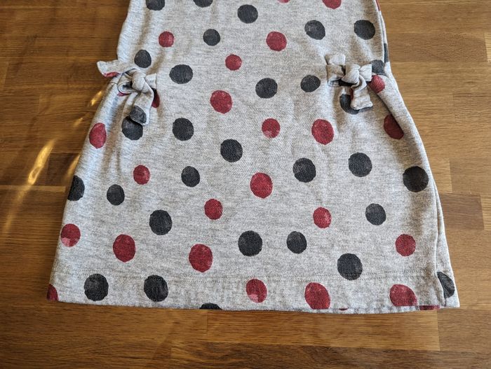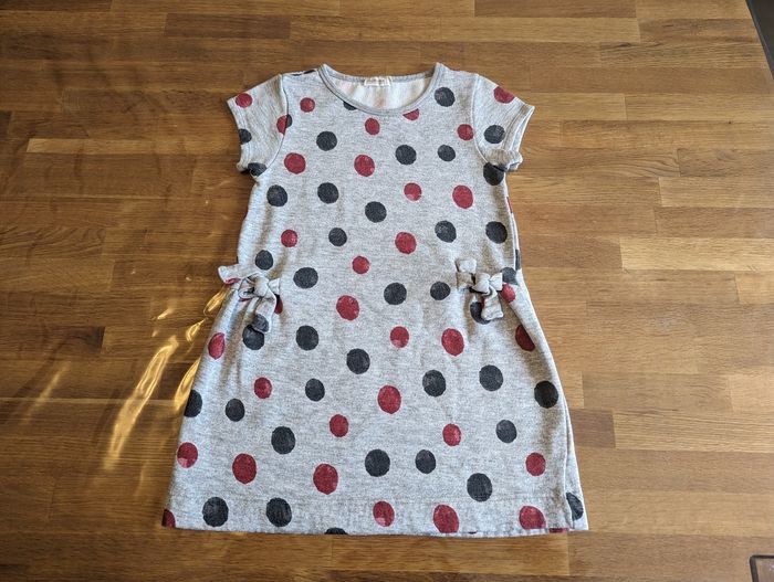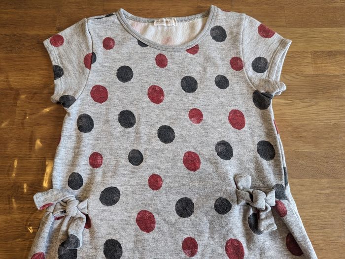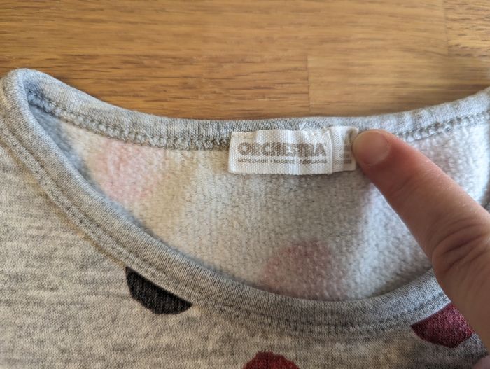 Robe fille 8 ans Orchestra Très bon état, gris et rouge 42% viscose, 29% coton, 29 polyester , assez chaude.