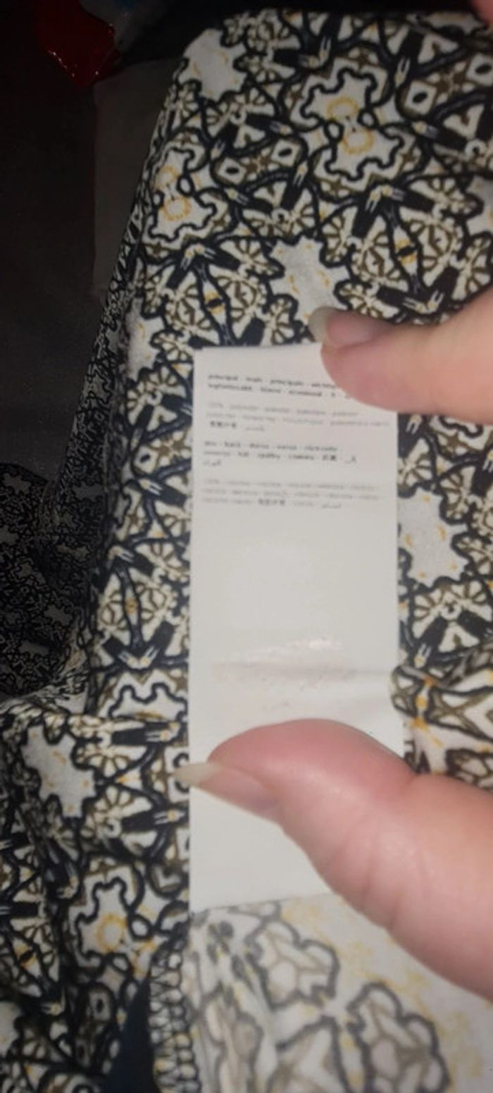En très bon état, liseret doré aux épaules, en bi matière, la partie motif en 100% polyester et le dos en 100% viscose #amvanessafemme42