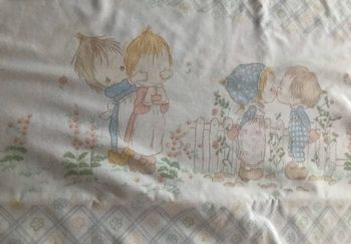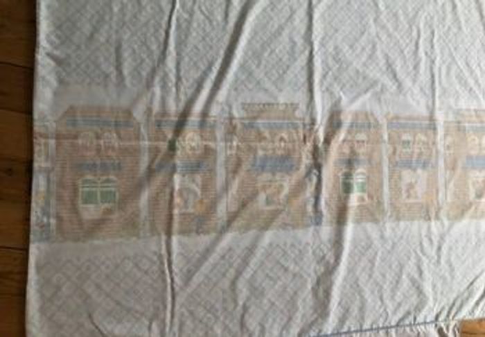 Housse de couette de très belle qualité 50% polyester 50% coton, blanche imprimé pastel 1 personne 140 x 200 cm repassage inutile , fermeture par pressions plastique, rabat bout de lit 1 tâche d’un côté , voir photo, invisible si posé du bon côté DORMA