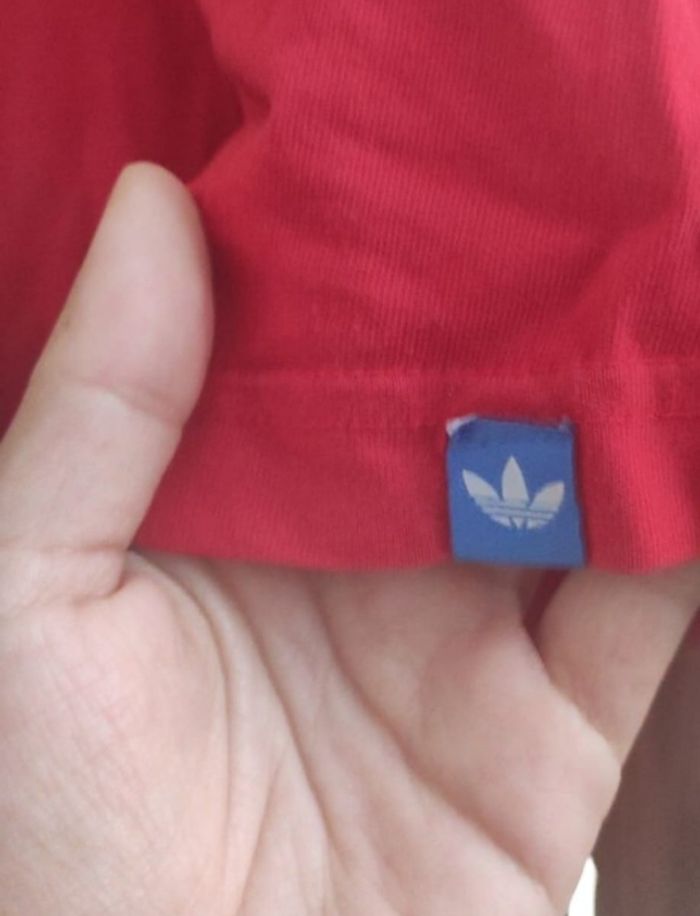 Tee shirt adidas effet j'intègre à manches courte, de couleur rouge. Étiquette couper par monsieur mais c'est une taille M.