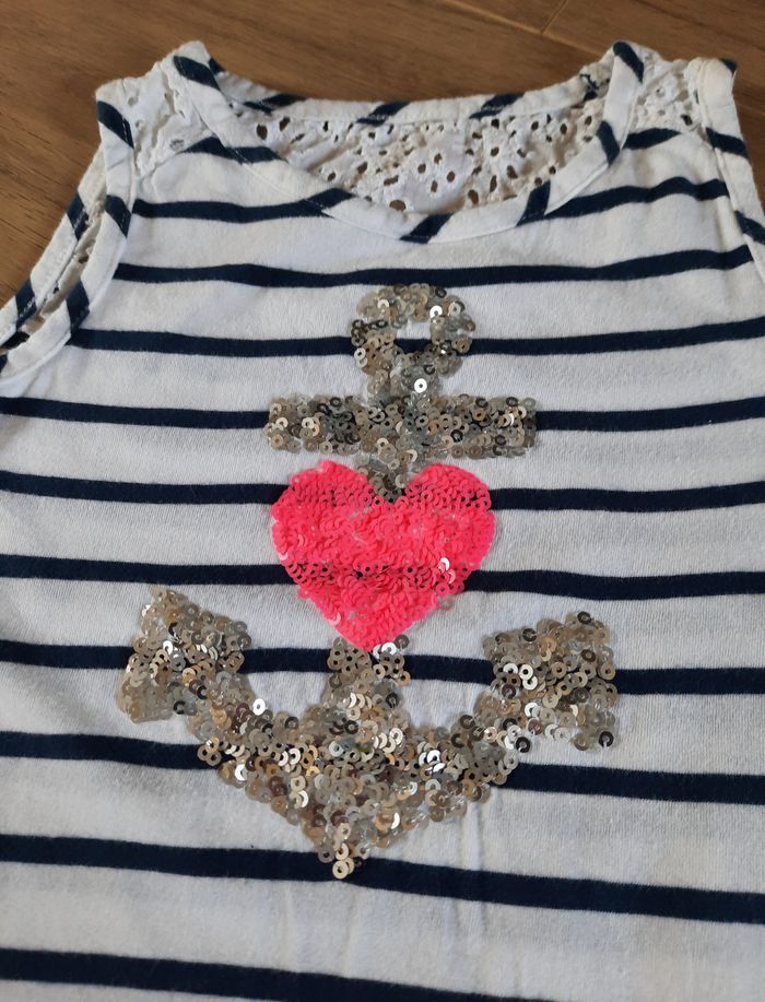 Débardeur bleu et blanc rayé avec ancre et coeur "Jillian's closet" 6 ans - photo numéro 4