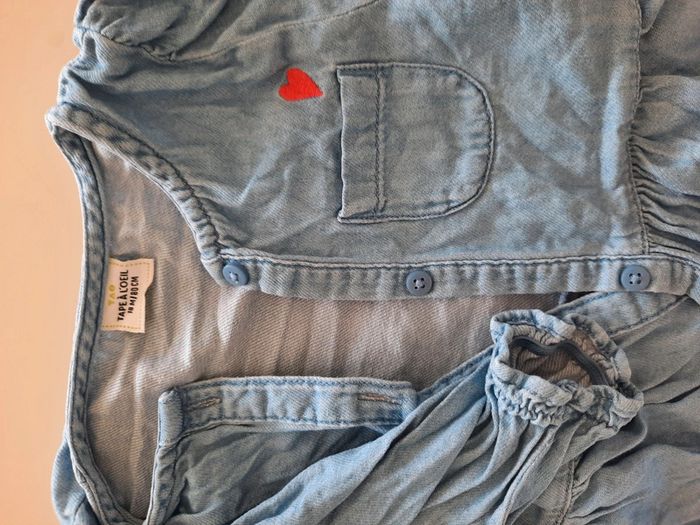 Vend robe en jean bébé fille, petit motif cœur. Acheté chez TAO, en taille 18 mois. Très peu portée, en super état. Possibilité de remise en main propre Lot-et-Garonne/Tarn-et-Garonne.