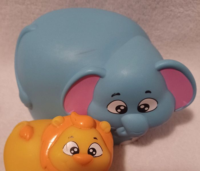 Il n'y a plus l aspergeur d origine car il avait moisi à l intérieur, les 2 sont neufs Noté bon état car petite griffure sur l œil du lion et sourcil un peu effacé et trait sur le dos de l éléphant (voir photo) #clo7721_bbjouets