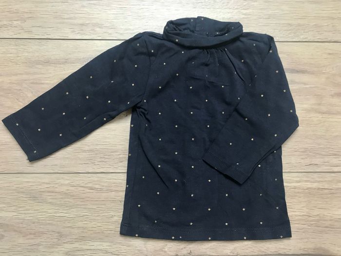 Tee shirt manches longues col roulé Kiabi bleu marine à étoiles