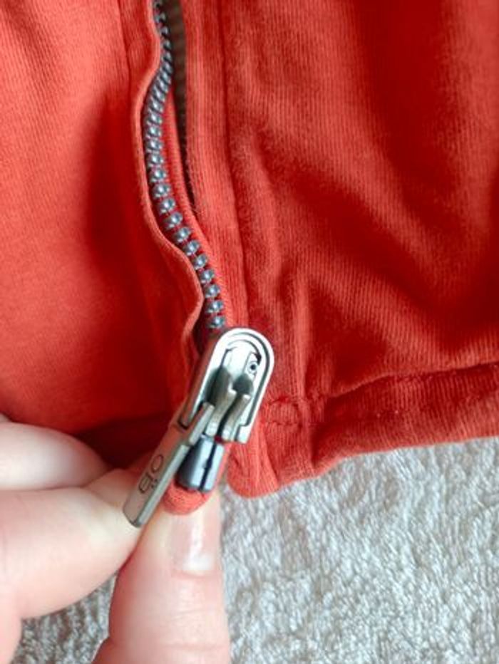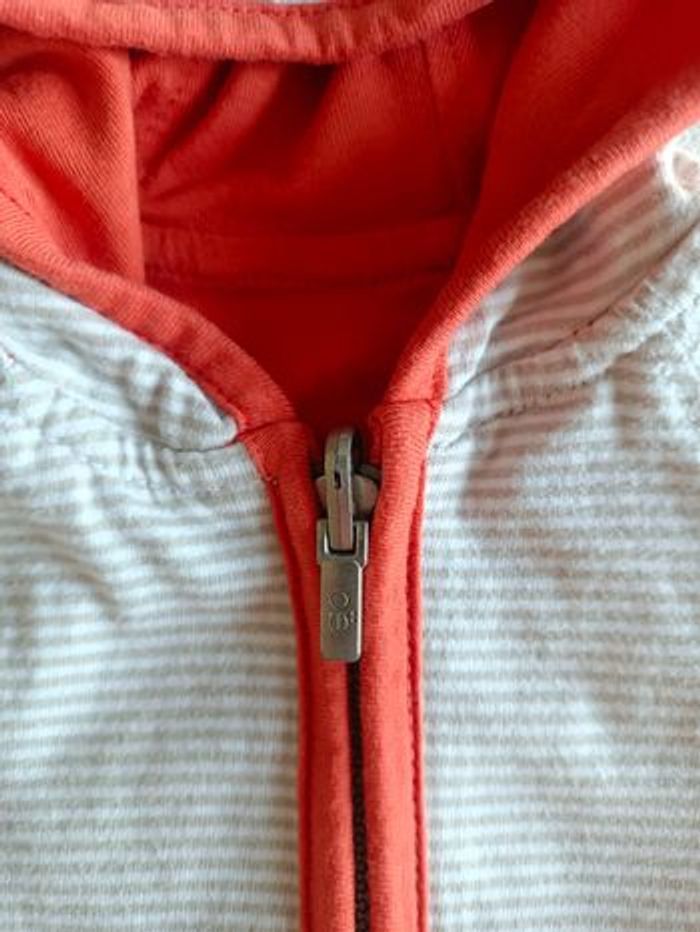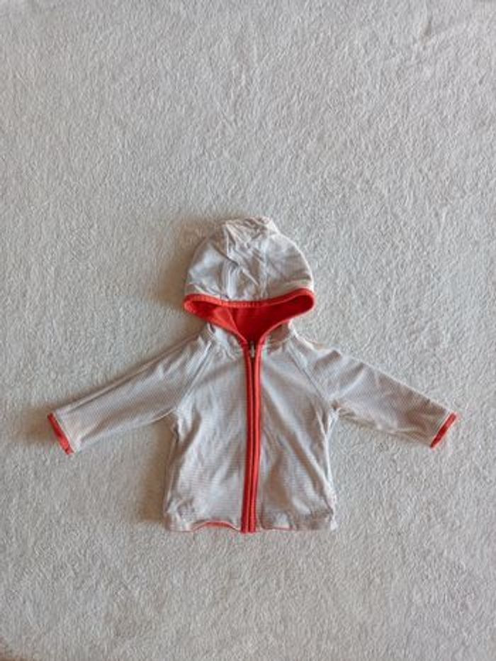 Gilet 2 en 1 1 face orange L'autre blanc rayer gris Étiquette caché dans la poche