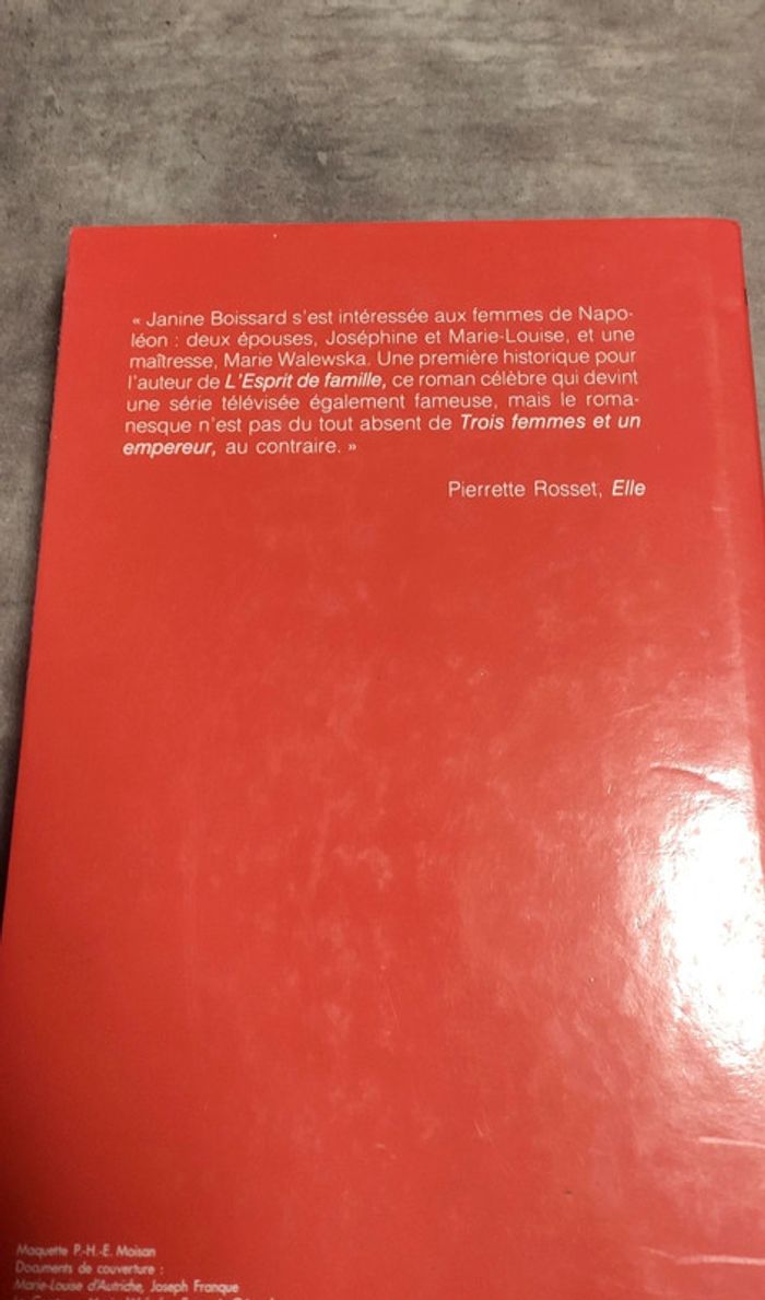 Elles ont aimé l'Empereur. Elles ont partagé sa destinée. Elles l'ont séduit et désarmé. Il les a marquées à jamais. Joséphine des Trois-Ilets. Marie Walewska, la Polonaise. Marie-Louise d'Autriche... Trois regards qui ont su reconnaître, au-delà des événements, la solitude de l'Empereur. C'est la première fois que Janine Boissard fait de l'Histoire la trame de ses récits. Mais elle donne aux situations et aux personnages que nous connaissons tous, les couleurs et le rythme du roman. Car ce livre est un merveilleux roman d'amour. Ou plutôt, le roman des amours impossibles : celui de Bonaparte pour Joséphine, celui de Marie Walewska pour Napoléon et celui de l'Empereur pour la postérité. Avec "Trois femmes et un empereur", Janine Boissard redonne enfin vie aux silhouettes inoubliables et si féminines qui ont approché l'Empereur. Mais surtout, et pour notre plus grand plaisir, l'auteur, avec talent et émotion, ressuscite le Temps: celui qui marche, qui unit, puis qui sépare...