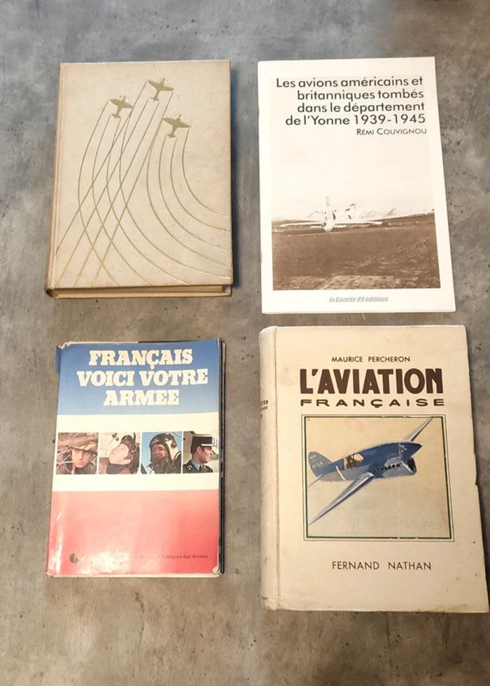 Lot de livres sur l'aviation, vendus en l'état: - le grand cirque 8€ - les avions américains et britanniques tombés dans le département de l'Yonne 10€ (rare, introuvable) - français voici votre armée 4€ - l'aviation française 10€ Ou 30€ le lot