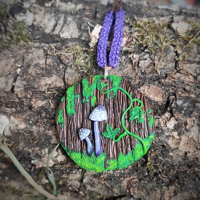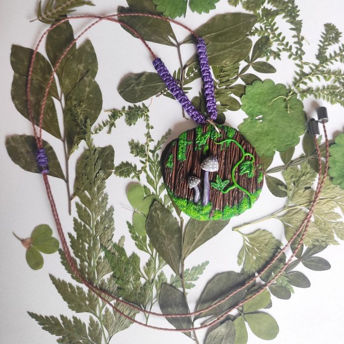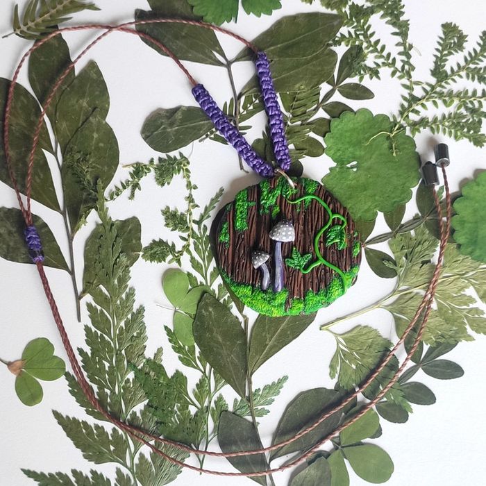 Petit totem féerique composé de planche de bois sculpté en pâte polymère et de petits champignons 🍄 avec de la mousse et feuilles de lierre ☘️. C'est un model unique. Monté sur un cordon tressé ajustable. #feuille , #feuilledeliere , #champignon , #totemmagique , #totemnature , #collierbois , #collierchampignon , #pendentifchampignon , #collierhippie , #collierethnique , #cadeau , #colliernature