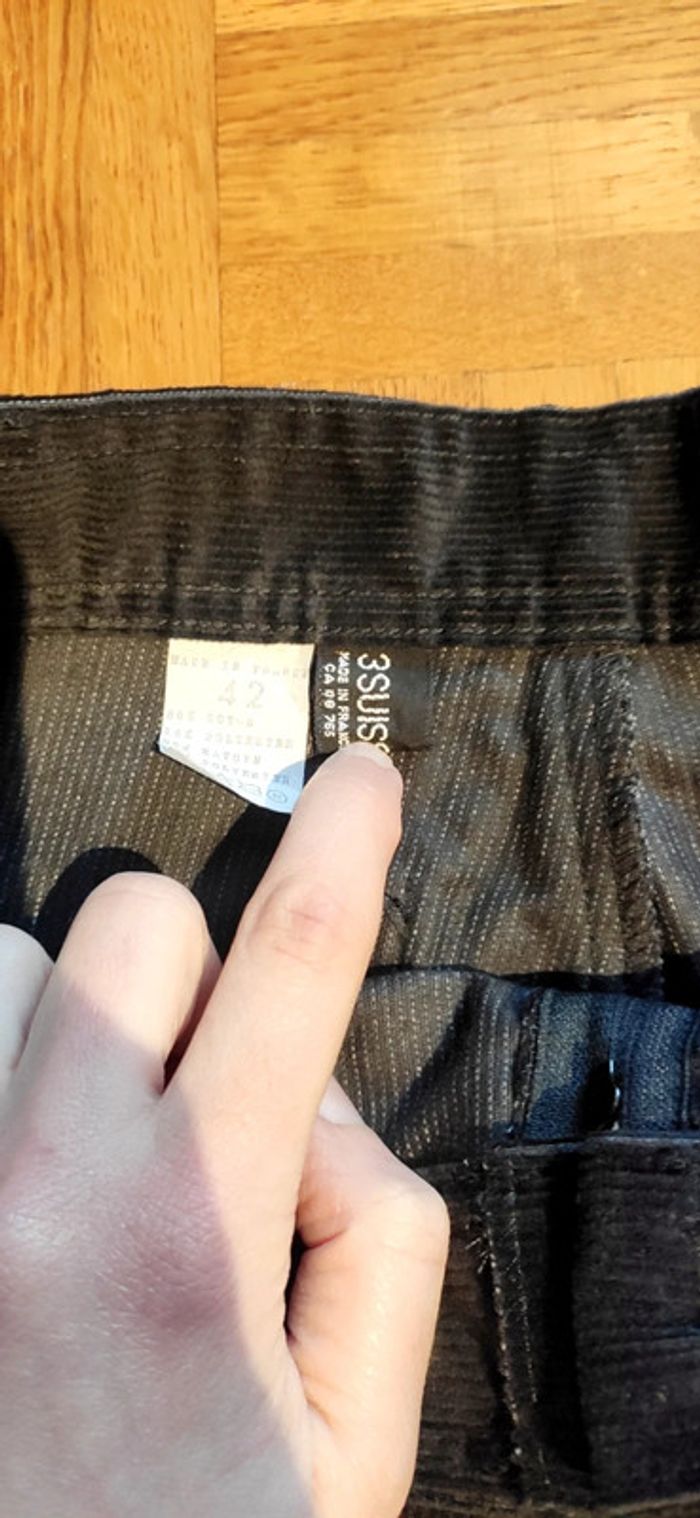 Pantalon chic et élégant épais, style velours. Marque 3 Suisses. L'étiquette de la taille ne correspond pas. Longueur taille 37cm Longueur pantalon 112cm