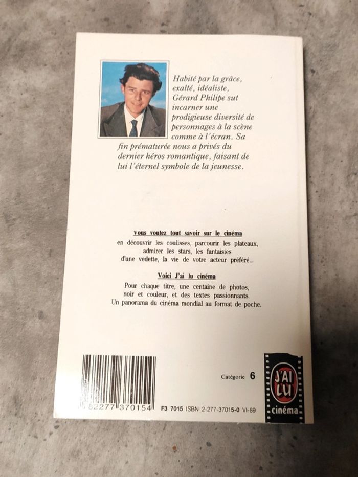 Livre avec des pages se détachants...(voir photo) d'où le petit prix. Habité par la grâce, exalté, idéaliste, Gérard Philipe sut incarner une prodigieuse diversité de personnages à la scène comme à l'écran. Sa fin prématurée nous a privés du dernier héros romantique, faisant de lui l'éternel symbole de la jeunesse