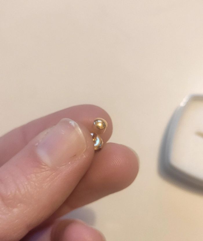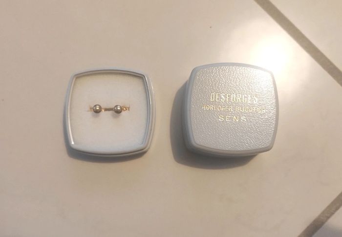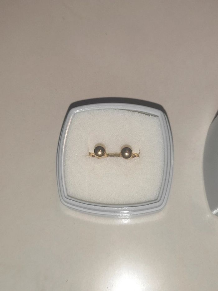 Petite puce d'oreille plaqué or, dans sa boîte d'origine. Très peu porté, comme neuve