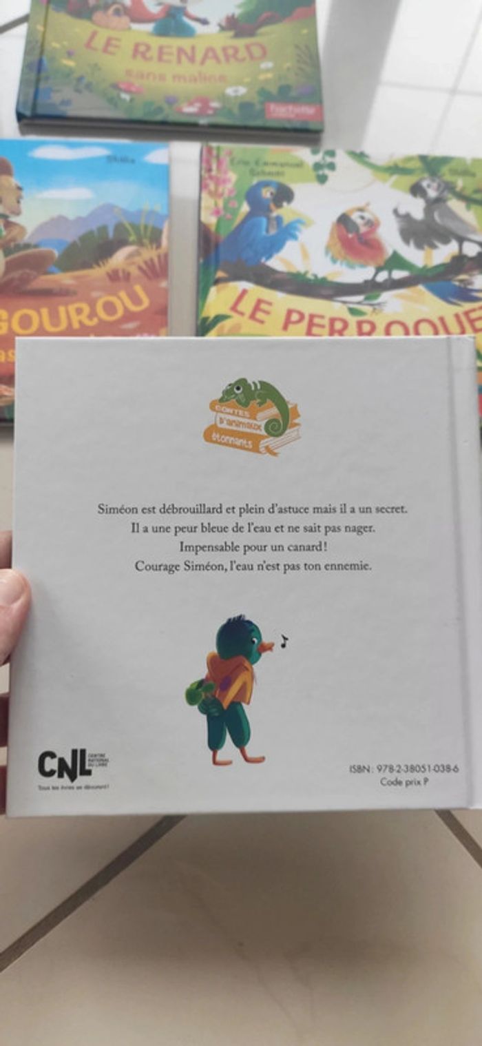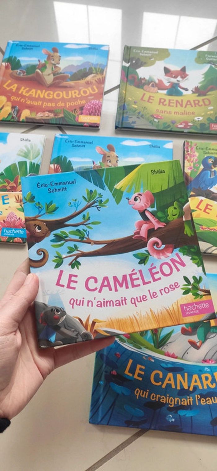 Lot de 6 livres Éric Emmanuel conte pour enfants: - le kangourou qui n'avait pas de poche (doublon) - le renard sans malice - la tortue qui aimait la vitesse - le perroquet qui ne pipait mot - le caméléon qui n'aimait pas le rose - le canard qui craignait l'eau Neuf, 8€ le lot