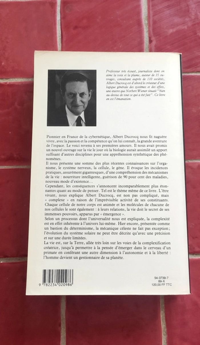 Pionnier en France de la cybernétique, Albert Ducrocq nous fit naguère vivre, avec la passion et la compétence qu'on lui connaît, la grande aventure de l'espace. Le voici revenu à ses premières amours. Il nous avait promis un nouvel ouvrage sur la vie le jour où la biologie aurait assimilé un apport suffisant d'autres disciplines pour une appréhension synthétique des phénomènes. Il nous présente une somme des plus récentes connaissances sur l'organisme, le système nerveux, la cellule, le gène. Il évoque les incidences pratiques, assurément gigantesques, d'une compréhension des mécanismes de la vie : nourriture intelligente, guérison de 90 pour cent des maladies, nouveau mode d'existence... Cependant, les conséquences s'annoncent incomparablement plus étonnantes quant au mode de penser. Tel est le thème même de ce livre. L'être vivant, nous explique Albert Ducrocq, est non pas compliqué, mais « complexe » en raison de l'imprévisible activité de ses constituants. Chaque cellule de notre corps est animée et les molécules de chacune de nos cellules le sont également : à leurs relations, la vie doit le secret de ses immenses pouvoirs, apparus par « émergence ». Selon un processus dont l'universalité nous est expliquée, la complexité est en effet inhérente à l'univers lui-même. Hier encore, présentée comme un bastion du déterminisme, la mécanique céleste ne fait pas exception ; l'évolution du système solaire ne peut être décrite qu'avec une précision et sur une durée limitées. La vie est, sur la Terre, allée très loin sur les voies de la complexification créatrice, jusqu'à permettre à la pensée d'émerger dans le cerveau d'un primate en conférant une autre dimension à l'autonomie et à la liberté : l'homme devient un gestionnaire de sa planète.