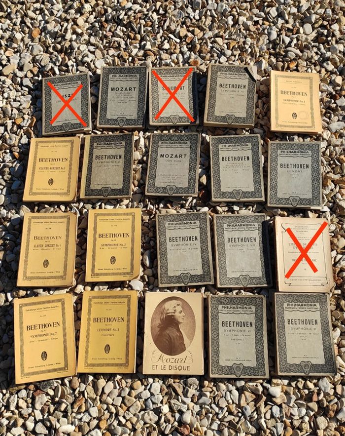 Lot de partitions très anciennes Philharmonia. Beethoven, Liszt, Mozart, Schubert, Berlioz 8€ l'unité ou 130€ le lot Rare