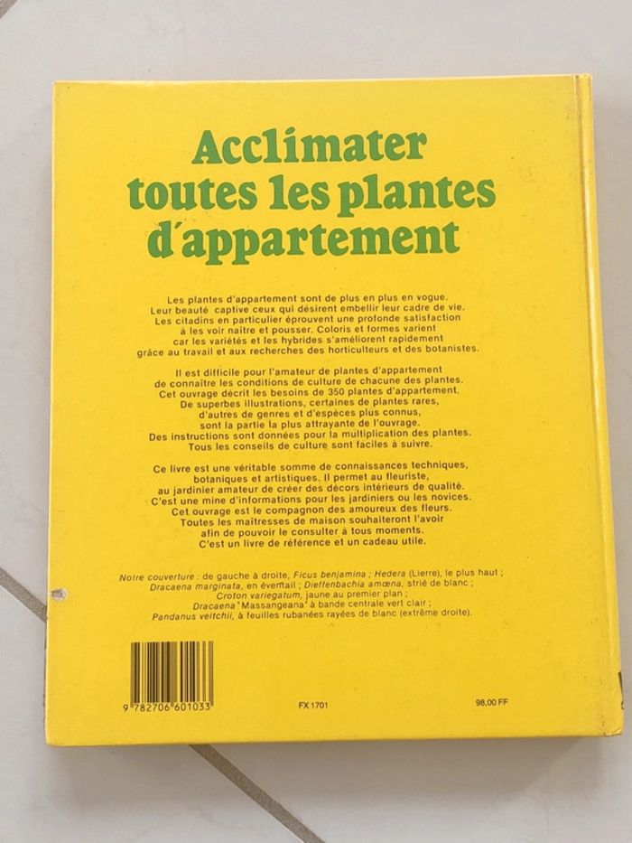 Cet ouvrage décrit les besoins de 350 plantes d'appartement avec de superbes illustrations et photographies avec des instructions et des conseils de culture. Véritable somme de connaissances techniques, il permettra au fleuriste ou au jardinier amateur de créer des décors intérieurs de qualité.