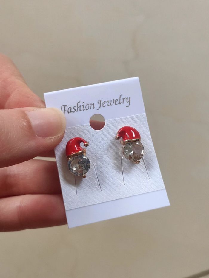 Boucles d'oreilles fantaisie père Noël avec faux diamants. Idéal pour cet hiver ! Neuves