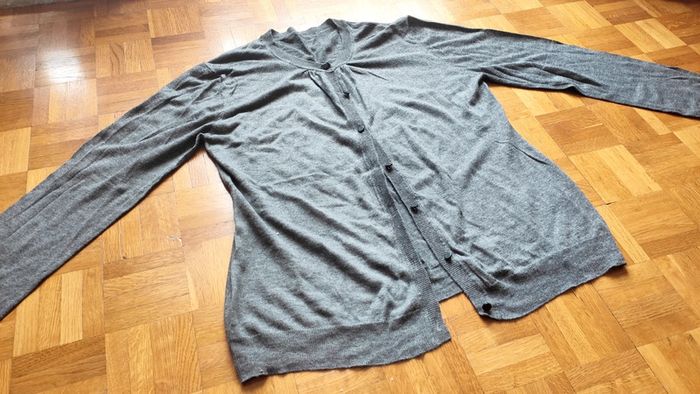 Joli petit pull gris, léger et agréable à porter. N'a plus l'étiquette mais correspond à une taille 46
