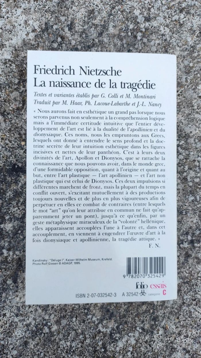 Essai polémique, la Naissance de la tragédie est un examen acerbe de la Grèce et de l'un de ses plus grands philosophes, Socrate. Selon Nietzsche, la tragédie doit être la représentation parfaite de l'unité entre Apollon et Dionysos, entre la mesure raisonnable et la démesure.