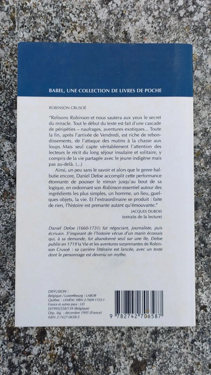 "Relisons Robinson et nous sautera aux yeux le secret du miracle. Tout le début du texte est fait d'une cascade de péripéties - naufrages, aventures exotiques... Toute la fin, après l'arrivée de Vendredi, est riche de rebondissements, de l'attaque des mutins à la chasse aux loups. Mais seul capte véritablement l'attention des lecteurs le récit du long séjour insulaire et solitaire, y compris de la vie partagée avec le jeune indigène mais pas au-delà. (...) Ainsi, un peu sans le savoir et alors que le genre balbutie encore, Daniel Defoe accomplit cette performance étonnante de pousser le roman jusqu'au bout de sa logique, en ordonnant son Robinson essentiel autour des ingrédients les plus simples, un homme, un lieu, quelques objets, la vie. Et l'extraordinaire se produit : faite de rien, l'histoire est prenante autant qu'émouvante." IACQUES DUBOIS