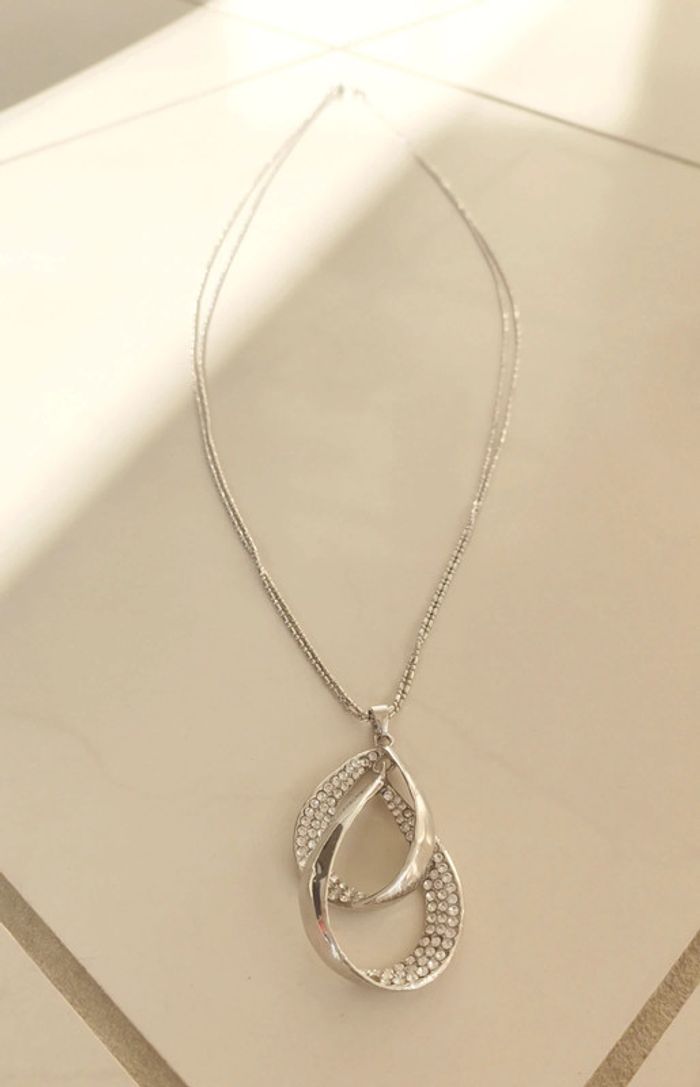 Collier goutte argenté avec faux diamants
