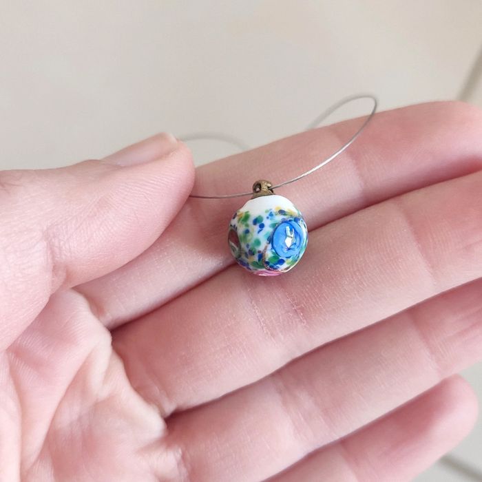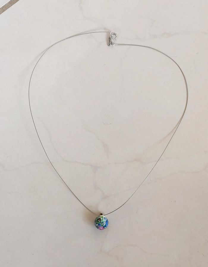 Collier avec pendentif boule en porcelaine, peinte à la main. Motif fleurs et rose Chic, élégant et fin.