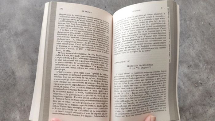 Écrit en italien, l'ouvrage comporte 26 chapitres. Dans le premier chapitre, les différents États sont classés selon deux grands types : les républiques et les monarchies, ces dernières étant soit héréditaires, soit nouvelles. À cette occasion, l'essai évoque les événements récents qui agitent l'Italie au Quattrocento, notamment les agissements de César Borgia pour s'installer en Romagne et les intrigues des Sforza dans le Milanais visant à évincer les Visconti. Dans les chapitres II à XI, l'auteur étudie les différents moyens de conquérir le pouvoir et de le conserver. Dans les chapitres XII à XIV, les questions militaires sont abordées, Machiavel se prononce notamment en faveur d'une conscription nationale au détriment de l'usage de mercenaires, qui sont davantage susceptibles de se retourner contre l’autorité princière. Les chapitres XV à XXIII exposent l’essentiel de ce que la postérité a interprété et retenu sous le nom de machiavélisme : des conseils relatifs à la conservation du pouvoir, dénués de morale. Les chapitres XXIV à XXVI dévoilent les intentions de l'auteur : ces conseils doivent permettre de libérer et d’unifier l’Italie.