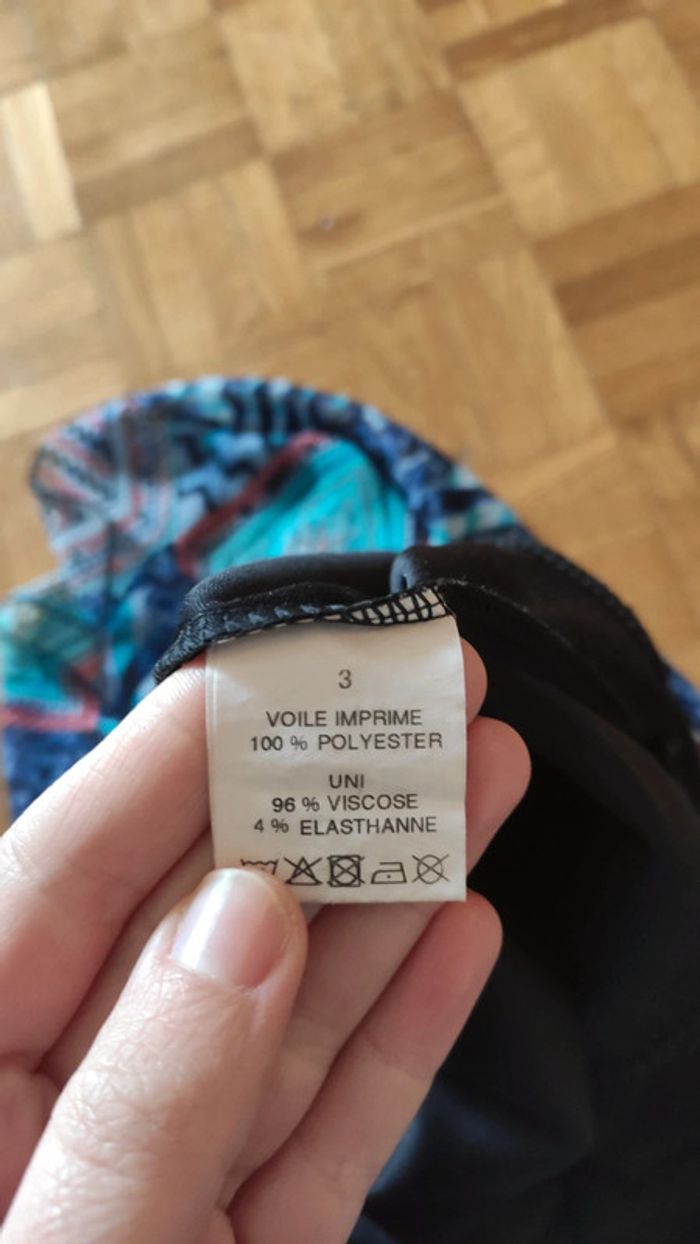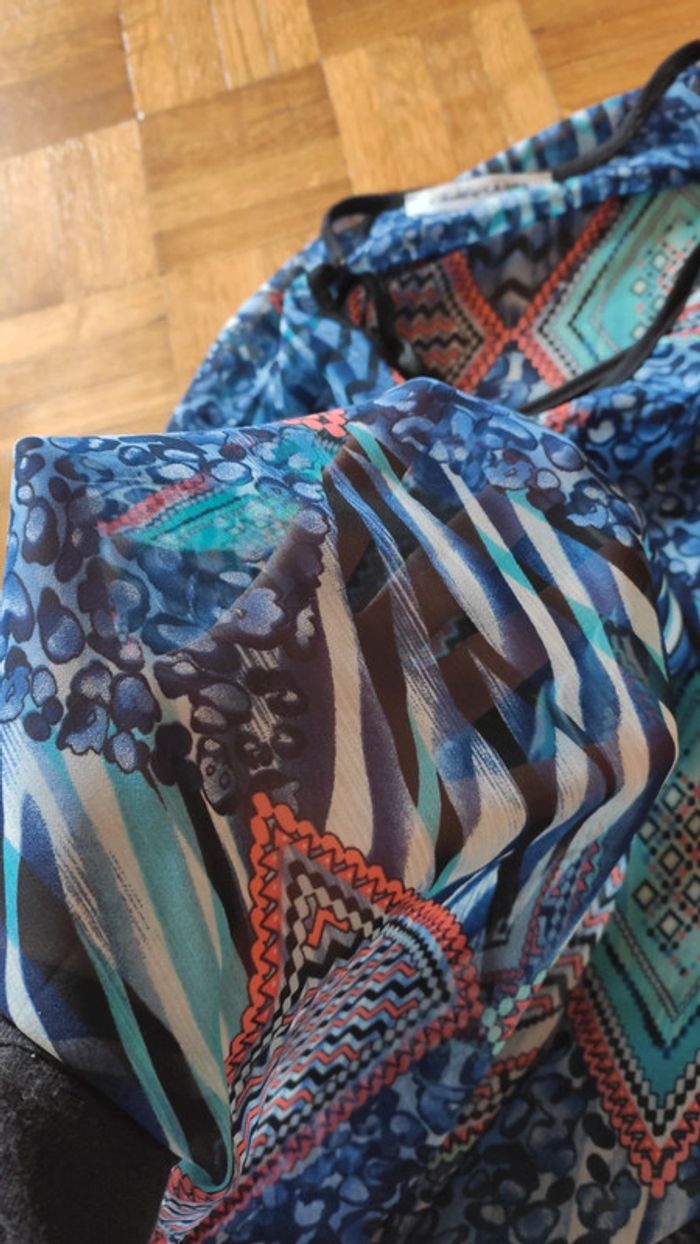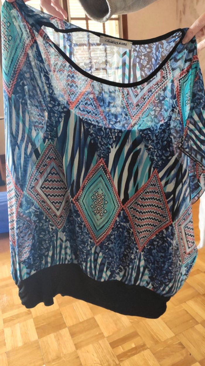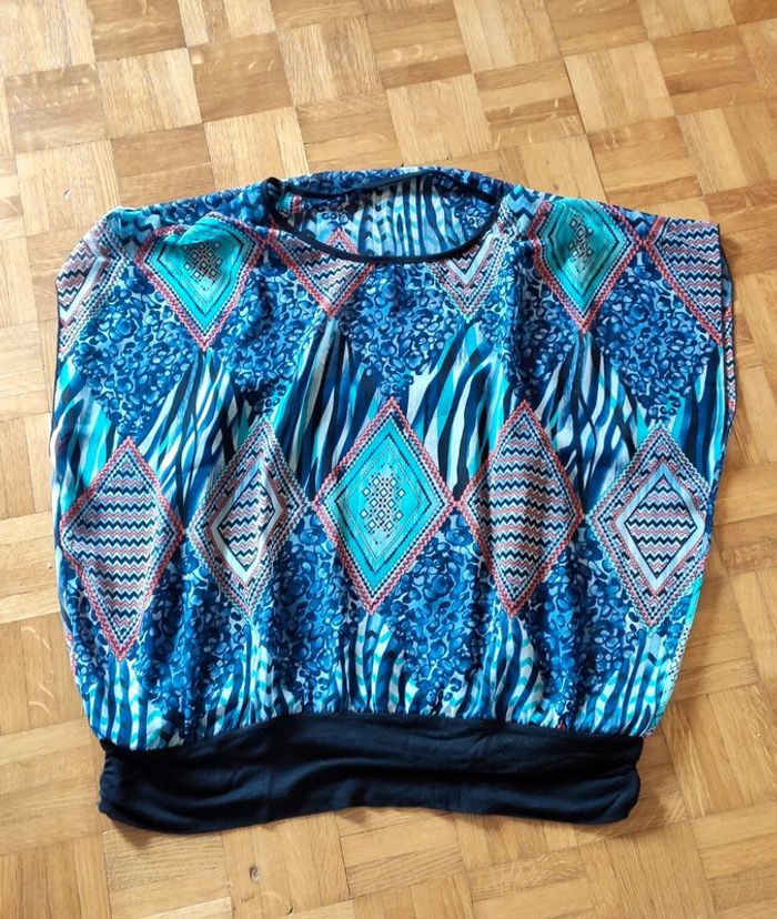 Jolie tunique ethnique bleutée transparente, avec débardeur intégré. Marque Christine Laure Taille 44/46