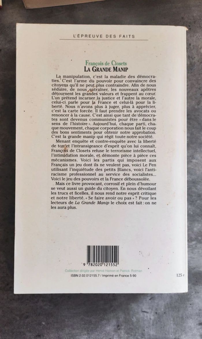 lot de livres sur François de Closets: -la grande manip 4Euro(s) -la france et ses mensonges 2Euro(s) -toujours Plus (neuf) 6Euro(s)
