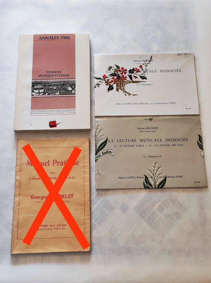 Lot de livres de partitions et musique: - annales 1986 examens musique et danse 10€ - la lecture musicale dissociée ( élémentaire 1 et 2) 8€ les deux. 18€ le lot