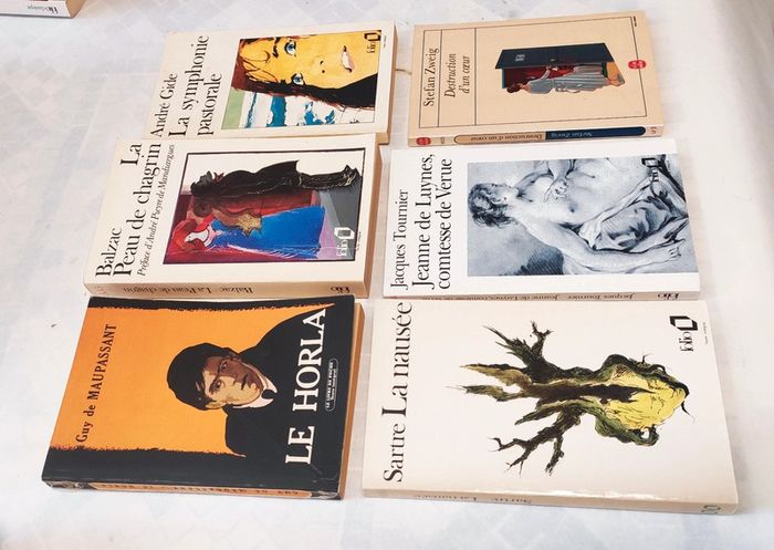 Lot de livres: - Le Horla - la peau de chagrin - la symphonie pastorale - la nausée, Sartre - jeanne de luynes, comtesse de verue - destruction d'un coeur 2€ l'unité ou 12€ le lot