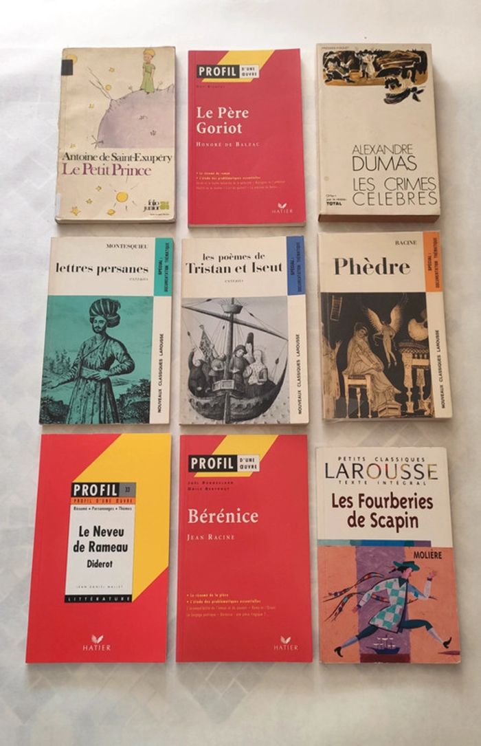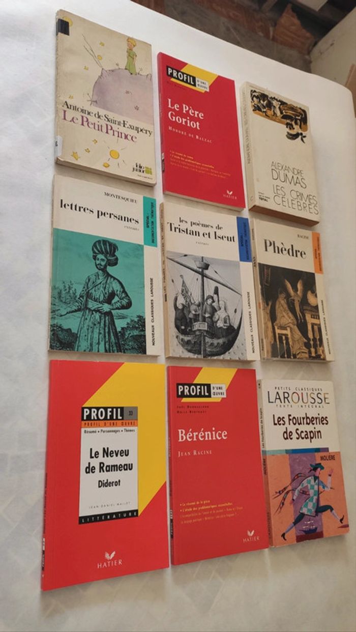 Lot de livres de poche sur le théâtre et autres: - le petit prince 1€ - le père Goriot 2€ - les crimes célèbres 2€ - lettres Persanes 1€ - les poèmes Tristan et Iseult 1€ - Phèdre 1€ - le neveu de rameau 2€ - Bérénice 2€ - les fourberies de scapin 1€ Ou 12€ le lot