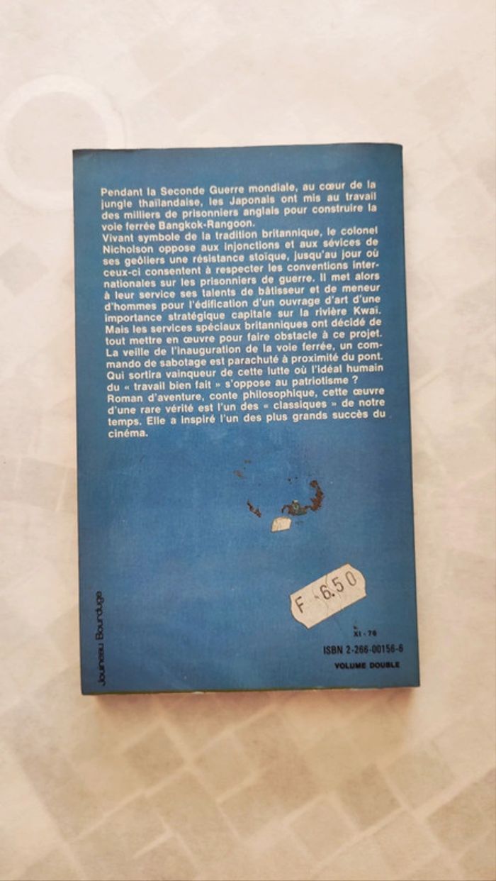 Le Pont de la rivière Kwaï est un roman de Pierre Boulle écrit en 1952, dont l'histoire inspirée d'un fait vécu se déroule pendant la Seconde Guerre mondiale. Le roman retrace la souffrance des soldats alliés prisonniers obligés de construire une ligne de chemin de fer de 415 kilomètres de long pour relier la Thaïlande à la Birmanie, alors que les Japonais occupent cette zone. Cette liaison est surnommée « voie ferrée de la mort » car elle a coûté la vie à des dizaines de milliers de travailleurs enrôlés de force, dont 16 000 prisonniers de guerre alliés réduits en esclavage. Près d'un quart des hommes ont succombé d'épuisement et de maladies (choléra, malaria et dysenterie). C'est autour de la construction du pont sur la rivière Kwaï que Pierre Boulle articule son récit.
