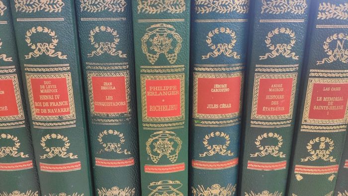 Lot de 15 tomes historique de collection édition Famot, livres vert et rouge avec dorure. (Le renaissance, Alexandre Legrand, Jules César, richelieu, les conquistadors, Marie Antoinette etc). 250€ le lot ⚠️ Me contacter avant chat car le tout pèse au moins 27kg si c'est pour un envoi.