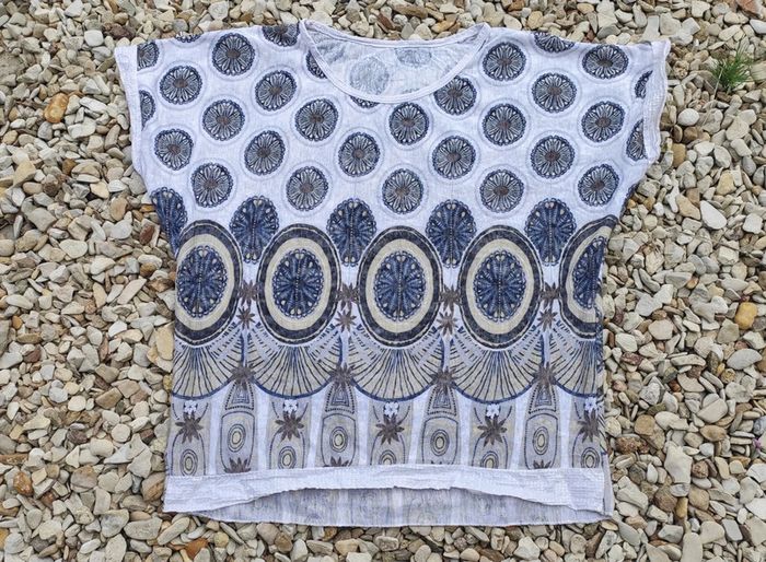 T-shirt ethnique sans manches original Aisselles à aisselles 70cm, longueur 67cm, largeur du bas 59cm