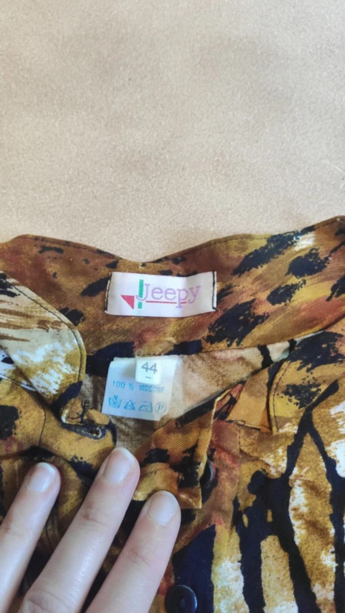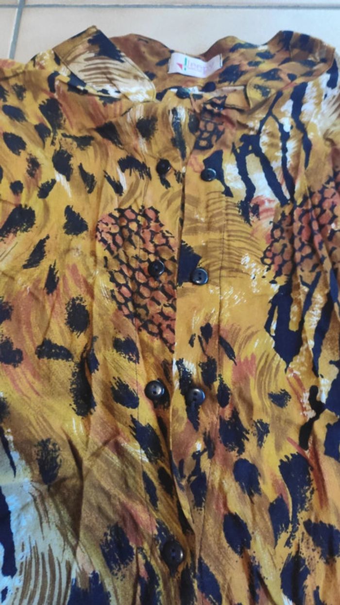 Chemise manches longues vintage imprimé léopard en viscose Taille 44, avec épaulettes (on peut les enlever)