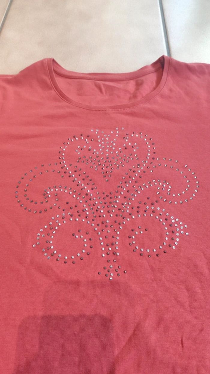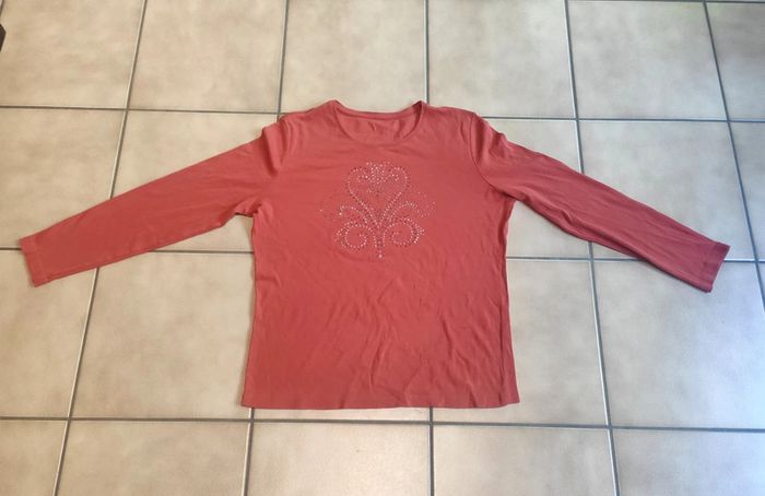 Haut orange avec dessin pailleté Manches longues Taille 48