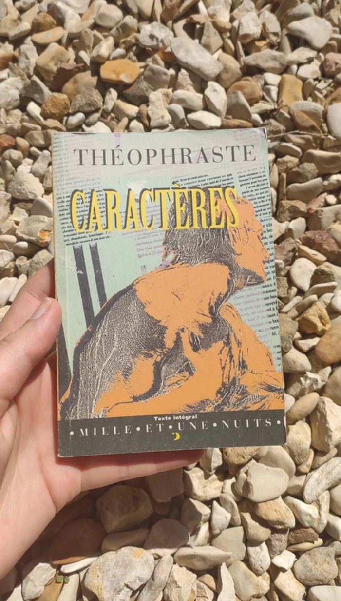 Livre ancien "caractères" de Theophraste . 30 portraits principaux qui composent Les caractères humains.