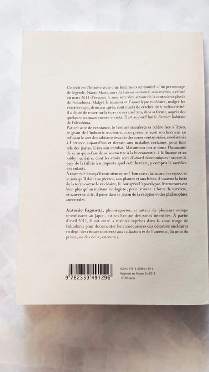 Petit résumé de cette histoire vraie, Le dernier homme de Fukushima : Tomioka était une ville tranquille de la côte est du Japon où vivaient, avant le 12 mars 2011, 16 000 habitants ; aujourd'hui il n'en reste qu'un, Naoto Matsumura. Tomioka a été évacuée au lendemain du tsunami, en raison de la fusion du cœur de trois réacteurs de la centrale de Daiichi, propriété de Tepco. En dépit des efforts et du courage des ouvriers, les réacteurs continuent de cracher de la radioactivité. La catastrophe de Fukushima marque la fin de l'utopie nucléaire et le début d'une catastrophe écologique qui va durer des siècles. Les habitants ont été évacués hors de la zone rouge, abandonnant animaux domestiques et animaux de ferme. L'ordre d'évacuation, initialement de 48 heures, a été prolongé. Il sera permanent. Matsumura, lui, a refusé de quitter la ferme où sa famille vit depuis cinq générations, pour manifester sa colère et sa résistance au géant de l'industrie nucléaire. Il ne calcule pas les doses qu'il reçoit quotidiennement et met un point d'honneur à nourrir les bêtes encore vivantes. Il parle franc et pointe l'opérateur nucléaire dont la toute puissance est palpable dans le pays. Rapidement, la presse étrangère s'est intéressée à ce " dernier homme debout ". Le parc nucléaire du Japon est le 3e au monde avec 54 centrales, derrière les États-Unis... et la France (58). Tepco, le shogun du nucléaire, continue d'agir dangereusement, soutenu par l'État. Leurs choix sont d'abord économiques. Il s'agit pour eux de sauver le pays de la faillite ; à n'importe quel coût humain. Mais la résistance s'organise. Les mères de Fukushima s'indignent. À Namie, un lapin sans oreilles est né. Symbole du Japonais en révolte passive, il ne veut plus rien entendre. Matsumura, dans sa lutte, incarne la terre contre le nucléaire...