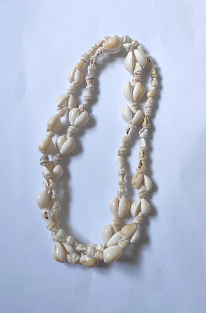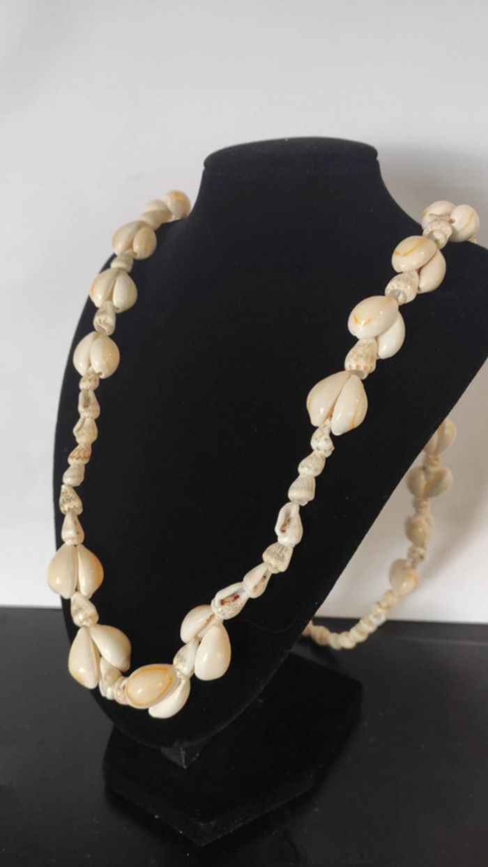 Collier de coquillages long Sans attache, se passe simplement par la tête. Effet mer, méditerranéen, crustacé, coquillages